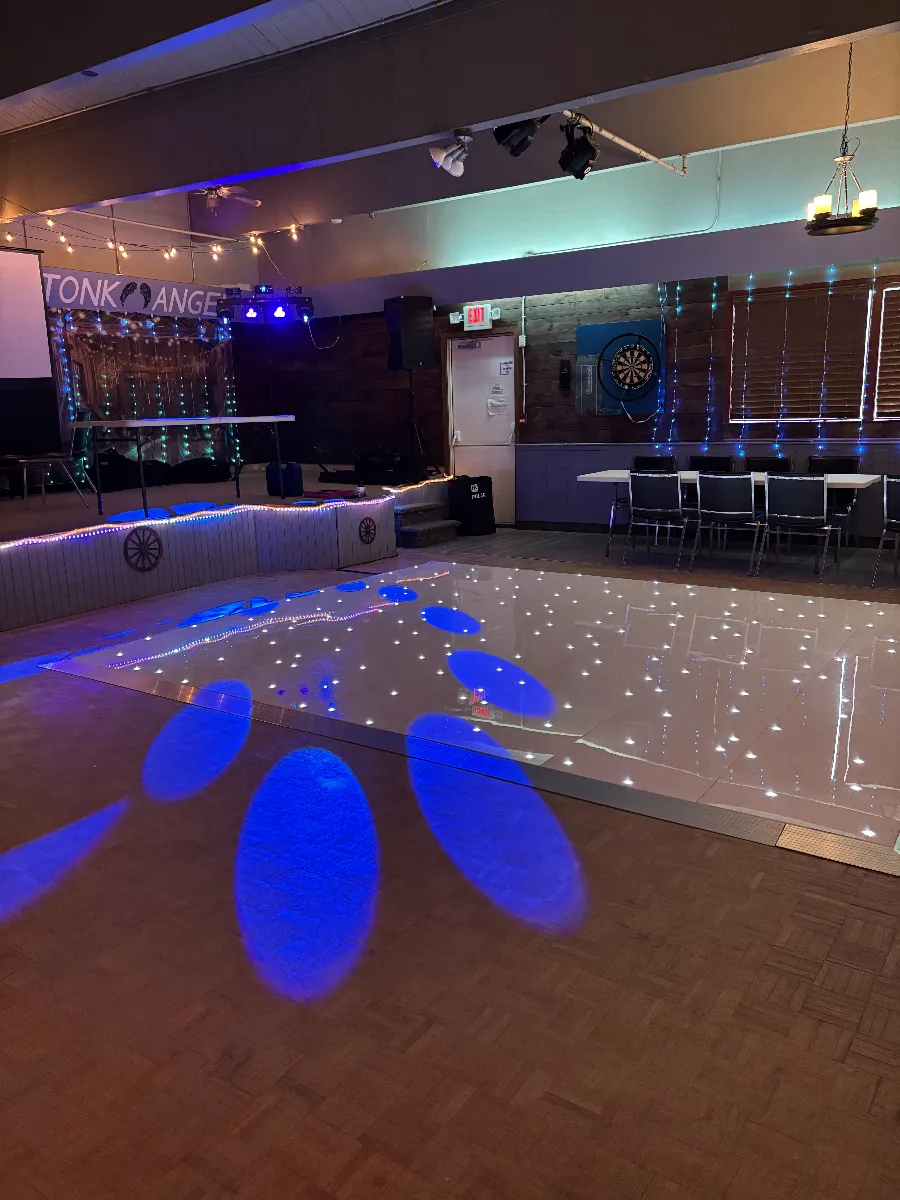 Enjoy music from the stage, or run a playlist and use it as a dance floor.
